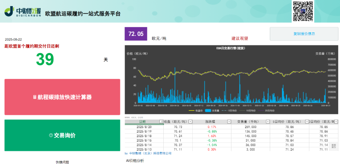 实时查询EUA价格,计算航程碳排放,助力航运碳合规